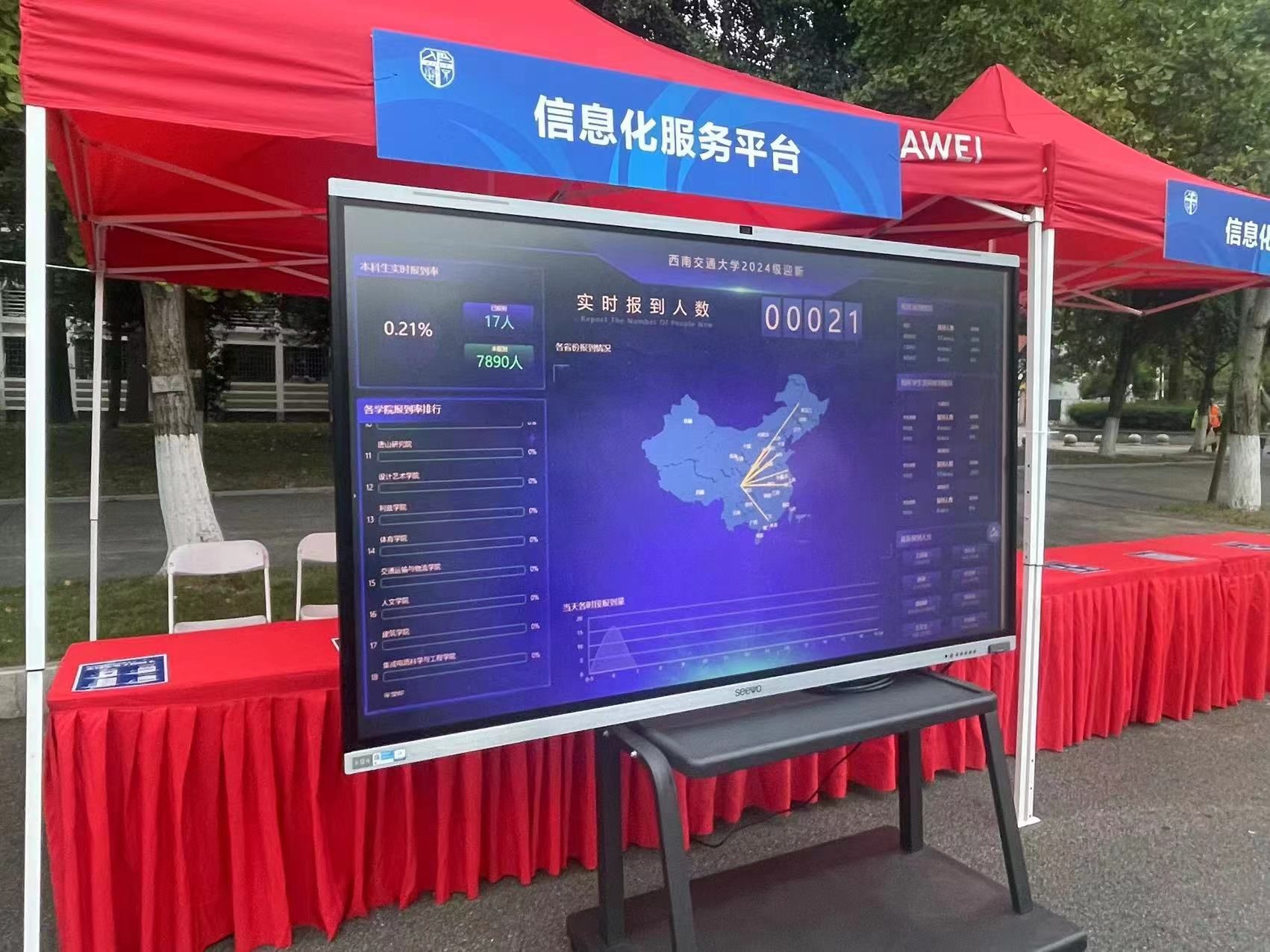 学校借助数字化手段,在迎新现场采用大数据、5G、人脸识别等技术,让新生报到更加智能高效。新生可在线进行预报到、查询个人信息、便捷缴纳学费、快速了解学校相关部门信息等操作,报到时仅需进行身份验证,领取一卡通和宿舍钥匙后便可在志愿者的引领下前往宿舍。迎新现场的滚动数字大屏,即时更新报到进度,相关管理人员也可登录学校企业微信和一网通办平台,了解迎新最新动态。