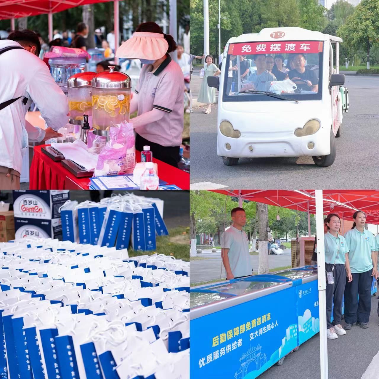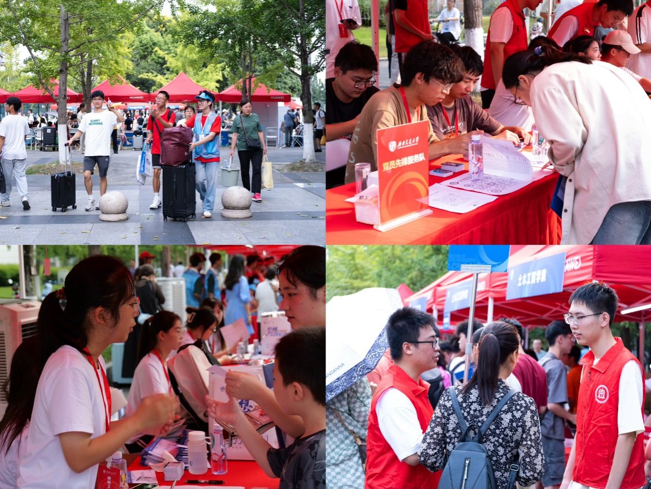 学校设立学院集中接待点,统一布置房伞、桌椅、标识横幅等,配置照明设备、无线网络、应急通信5G车、防暑降温设备、免费摆渡车等,做好迎新保障工作。此外,校园迎新通道东西两侧均设立家长休息区,并免费提供饮用水及冷饮。