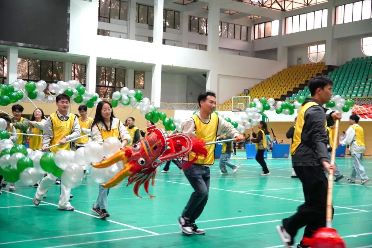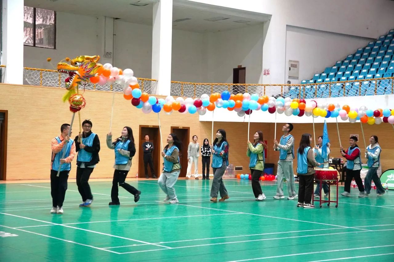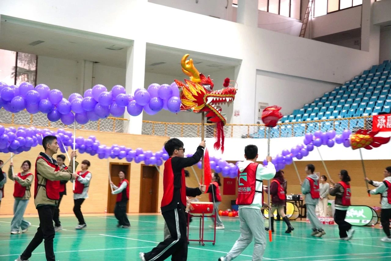 成功“登陆”后迎来了压轴大戏——“舞动青春”舞龙表演。学员们设计并制作了一条气球龙,并精心编排了相匹配的舞龙动作和大鼓节奏。随着鼓点的响起,三条“巨龙”逐渐盘桓而出,栩栩如生,它们或盘旋、或翻腾,展现出各自独特的风采,赢得了阵阵掌声和喝彩。经过激烈的角逐,“奶龙队”凭借出色的表现和团队协作,以44分的高分荣获冠军。