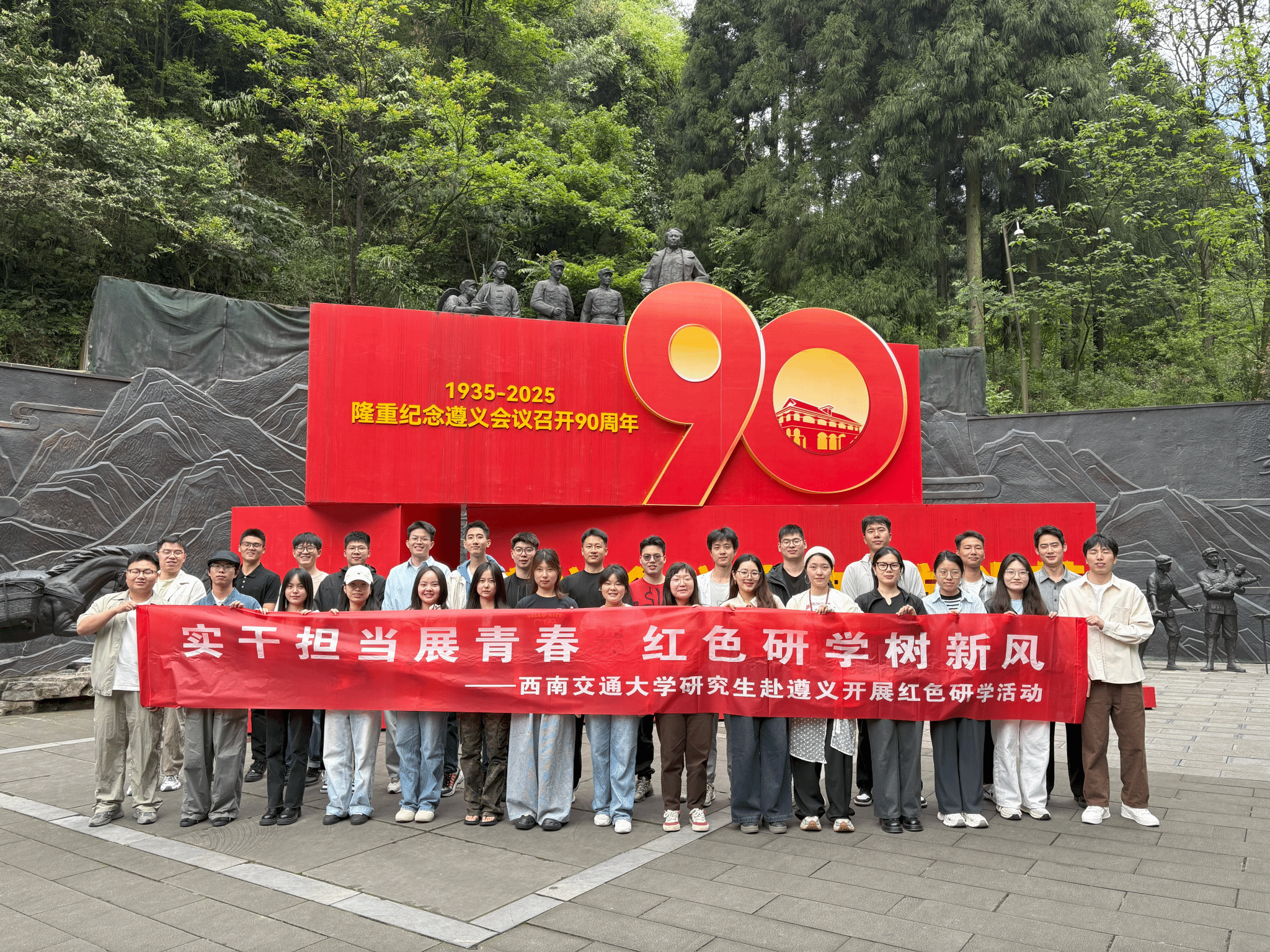 恰逢2025年遵义会议召开90周年之际,研究生骨干们通过重走娄山关、遵义会议会址等革命地标,将历史烽烟与时代使命相联结,凸显中国共产党在生死存亡关头以真理之光引领转折的智慧,以及长征精神“越是艰险越向前”的永恒价值。站在复兴征程的新起点,遵义会议精神不仅是历史的丰碑,更是催人奋进的号角,激励同学们在学习工作中不畏艰难险阻,勇攀高峰,以良好的精神风貌走好新时代的长征路,让红色信仰在民族复兴的伟业中永放光芒。