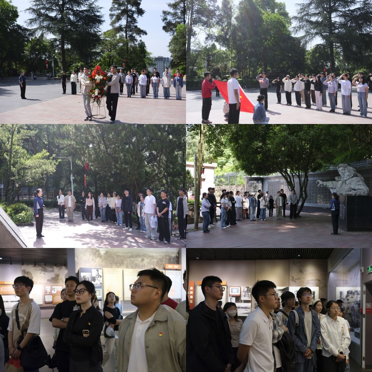 5月9日,同学们前往位于遵义市城区湘江河畔的小龙山上的红军山烈士陵园,纪念在遵义战役中牺牲的红军烈士,在讲解员带领下,同学们先后参观了红军烈士纪念碑、邓萍烈士墓、烈士墙和红军坟,并举行了向红军烈士敬献花篮仪式,重温入党誓词,再次庄严地许下了对党和人民的忠诚誓言。同学们深刻感受到,先烈们为革命事业奋斗的优秀品格和崇高风范,红军战士为救国救民,不怕任何艰难险阻,勇于牺牲一切的伟大精神。随后同学们前往遵义会议会址、遵义会议陈列馆参观,在实地参访与现场教学过程中,同学们深切体悟“坚定信念、坚持真理、独立自主、团结统一”的遵义会议精神。