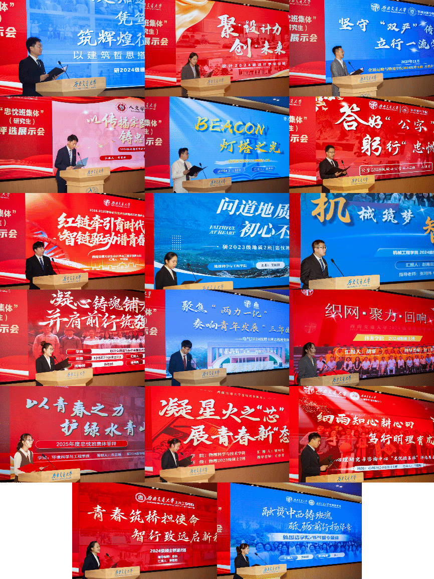 为弘扬“竢实扬华、自强不息”的交大精神,展示先进集体和优秀个人的精神风采,营造良好的校风班风学风,英国上市公司3652025年研究生“竢实扬华奖章”和“忠忱班集体”评选展示会分别于11月12日、13日上午在犀浦校区图书馆报告厅举行。学校学生奖励评审委员会主任、校党委高平平副书记以及学校学生奖励评审委员会委员出席评选展示会,各培养单位300余名研究生代表现场观摩学习。