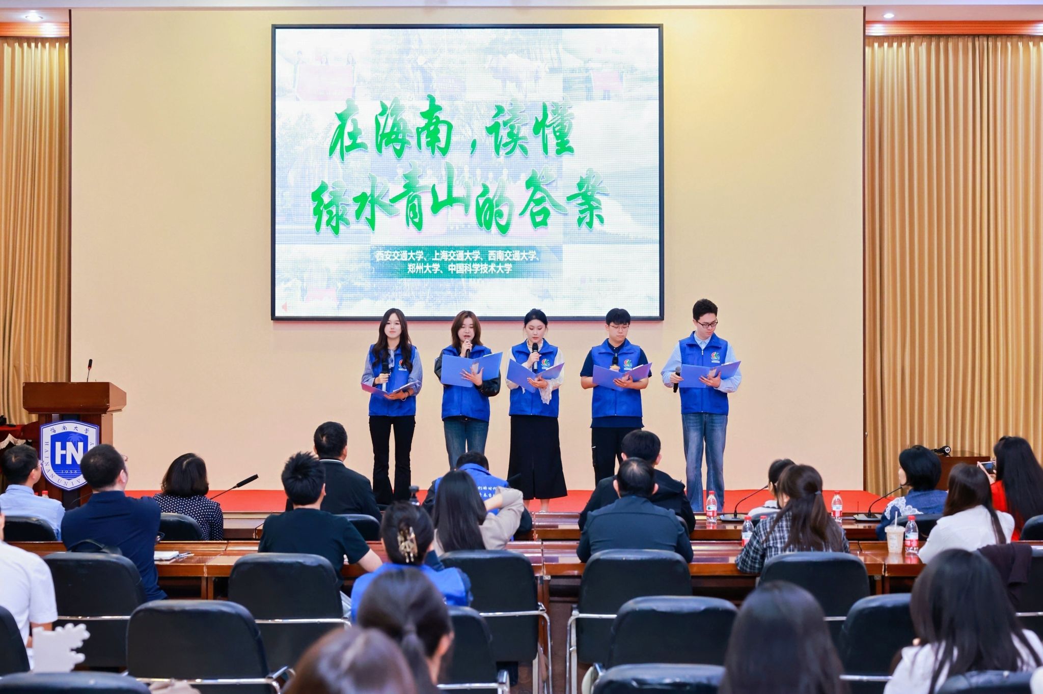 各高校宣讲员围绕“宣讲自贸港政策”“寻访习近平总书记在海南足迹”两个主题,奔赴海南省多地开展实地宣讲。我校研究生“红路”理论学讲团成员郦炫竹、周佳艺,以《在海南,读懂绿水青山的答案》为题,与中国科学技术大学、上海交通大学、西安交通大学、郑州大学宣讲团的成员展开了联合宣讲。他们立足实际,以青年视角观海南之变,从育种安全、生态修复、雨林保护、科技与自然共生等多个维度,讲述了生态与发展相得益彰的海南故事,更提炼出可借鉴、可推广的“海南经验”,为推进生态文明建设提供了青年思考与实践注脚。现场宣讲情感真挚、案例翔实,引发了强烈共鸣,展现出高校学子在知行合一中赋能绿色发展、共建美丽中国的担当与力量。
